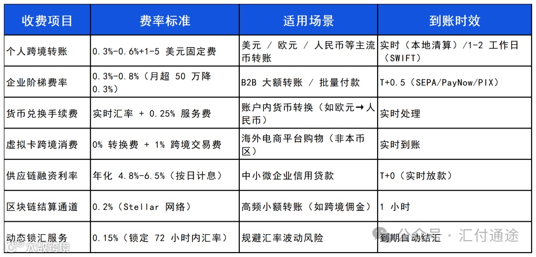 3. 低成本普惠金融服务:个人转账费率0.3%-0.6%(无开户/管理费);企业月交易超50万美元享0.3%超低费率(较行业低30%),年交易1亿美元可节省30万美元[k]。