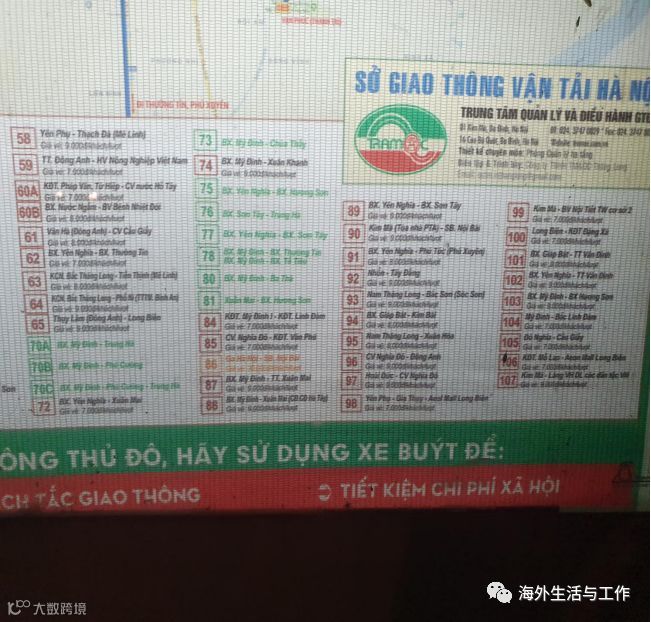 (一)笔者在河内市公交车站拍摄到的公交线路图
