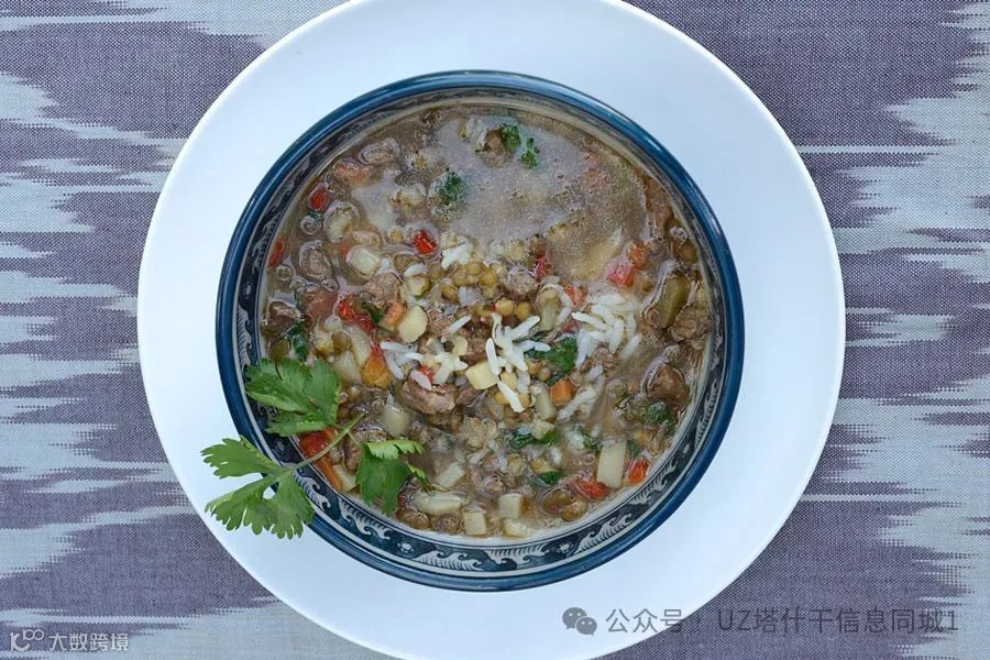 汤汁丰盛,搭配面包或烤馕食用,极具饱腹感,是乌兹别克家庭和餐馆中的经典菜肴[k]。亦有使用鱼、肉丸或鹰嘴豆的变体做法[k]。