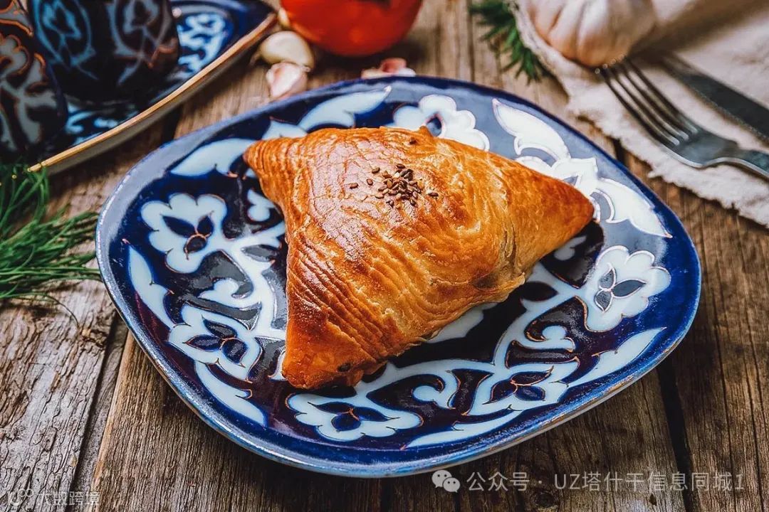 Samsa 是一种在馕坑或烤箱中烘烤的咸味糕点,外形多为三角形或方形,外皮酥脆,内馅多汁[k]。传统馅料以羊肉为主,也常见牛肉、鸡肉、土豆、南瓜或洋葱口味[k]。