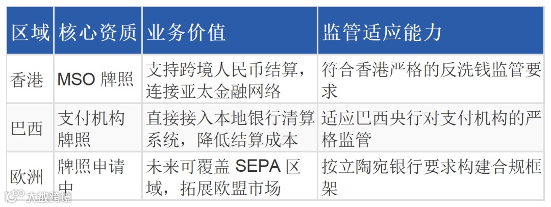 - 持有香港MSO、巴西支付机构等牌照,合规网络覆盖亚太与拉美核心区域[k]