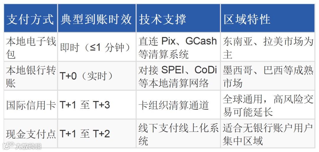 不同支付方式到账时效差异显著,体现新兴市场清算网络特点[k]