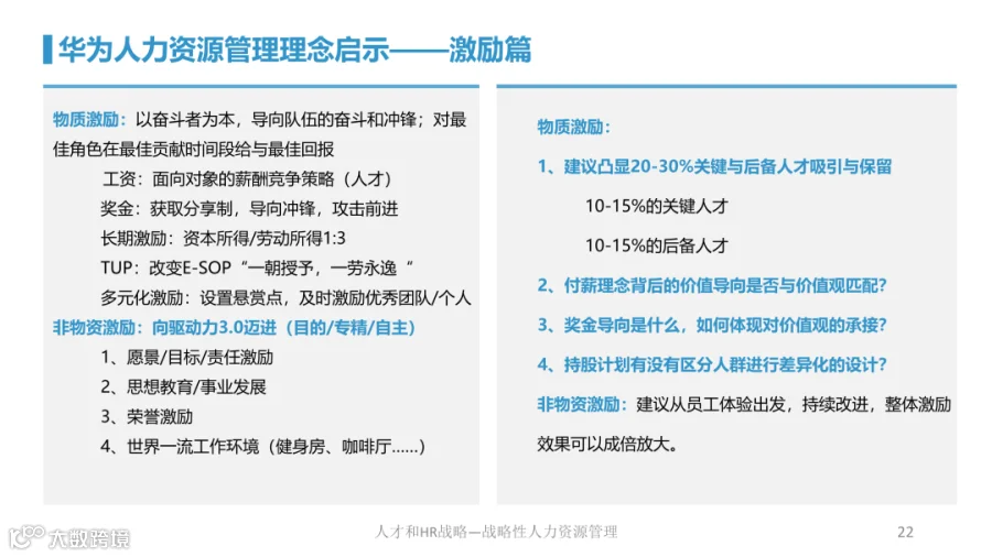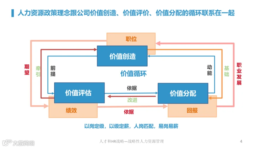 首先,华为强调以价值创造为导向。这意味着人力资源管理的核心是围绕企业的战略目标,激发员工的创造力和价值实现能力。企业通过对员工绩效的评估和激励,确保员工能够为企业带来持续的价值增长。