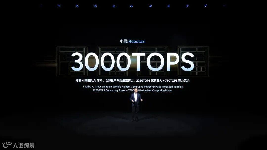 在最核心的自动驾驶硬软件层面,小鹏Robotaxi搭载4颗图灵AI芯片,车端算力高达3000TOPS(处理器运算单位,每秒万亿次操作),是目前全球最高水准。
