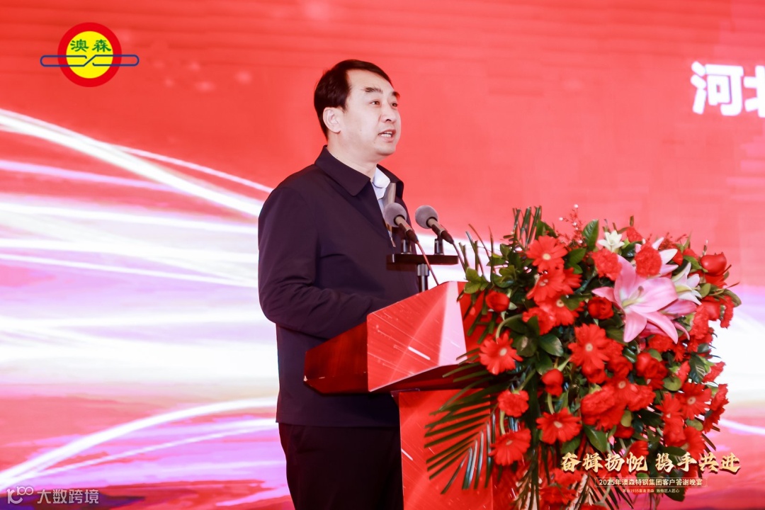 曹跃彬在总结发言中与在座客户,畅谈创业历程与心得,并对多年来一众客户对澳森的支持与关注表示感谢,并指出澳森的稳定可持续性发展离不开政府和各位合作伙伴的帮助和支持。他强调,未来澳森将始终坚守质量与服务底线,以市场需求为导向,以客户为中心,不断提升产品质量,优化服务体系,推动钢铁行业高质量发展,实现互利共赢。
