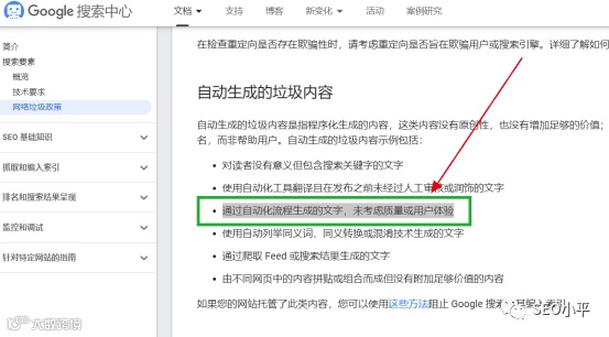 截图来源于谷歌搜索中心:垃圾内容政策https://developers.google.com/search/docs/essentials/spam-policies?hl=zh-cn