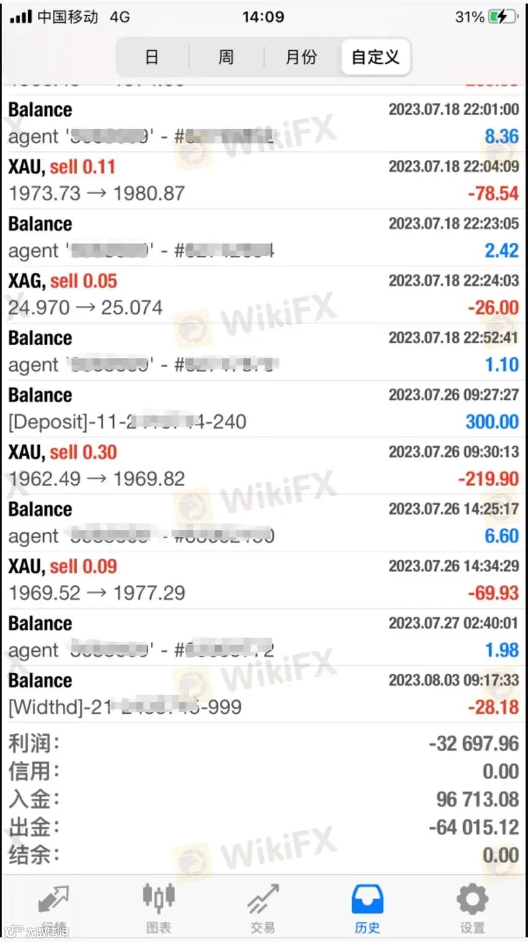 交易层面问题包括:国际标准仓为0.01手,金荣中国设为0.05手;多空双向收取隔夜费;点差高达双50;频繁卡盘滑点;疑似后台操纵行情;账户风险时无法入金直至爆仓,而爆仓资金却能立即到账[k]。