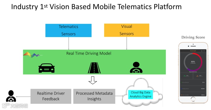 Wavelength 通过在车内安装的计算机视觉传感器记录司机实时行驶环境数据,在边缘端进行数据处理判断,99%的数据保留在车内,不保存图片或视频,不涉及隐私。只有当风险发生后的处理过的文本数据结合云端的其他数据比如天气交通等进行大数据分析,为驾驶员的驾驶行为评分定级。