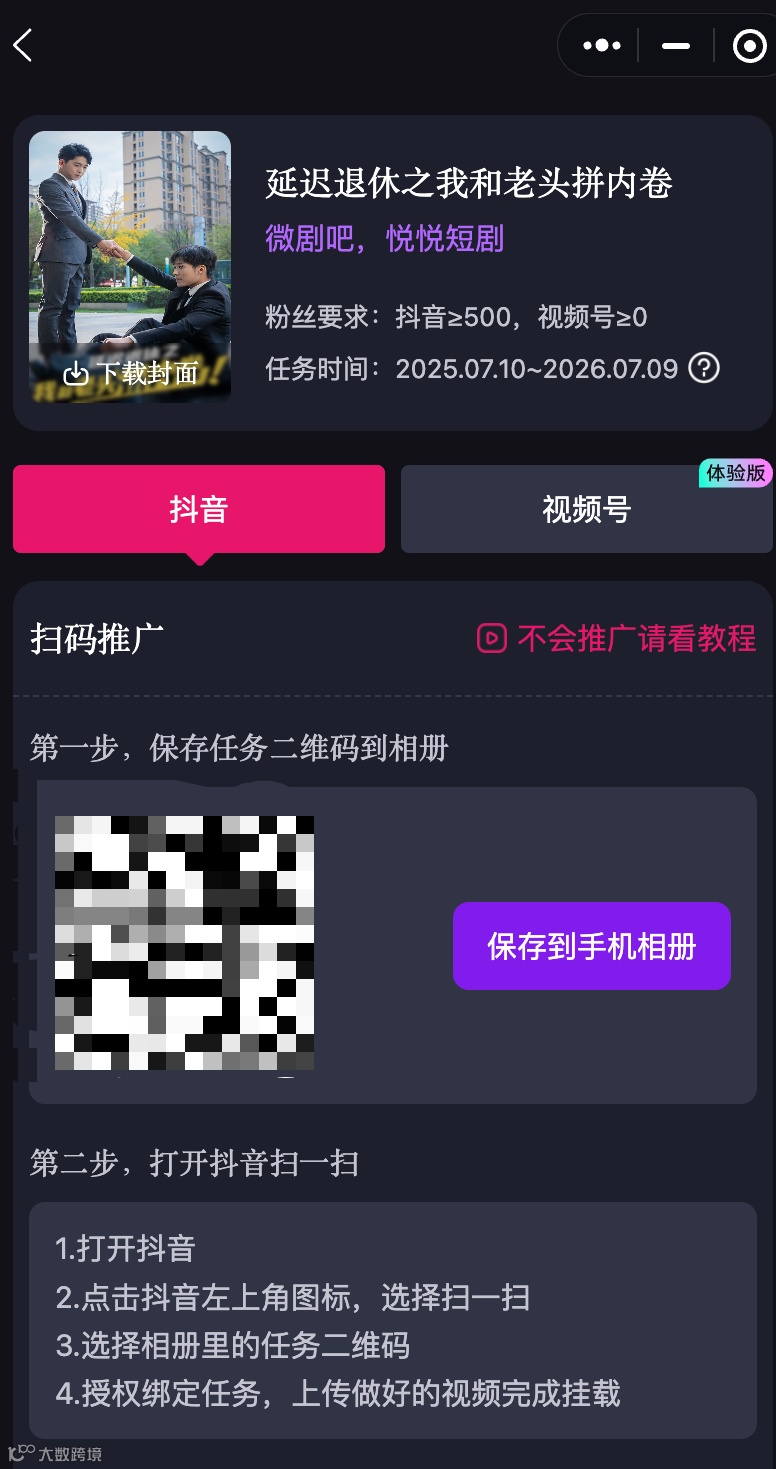 将生成的视频发布到短视频平台,并挂载平台提供的分佣链接。当用户通过你的视频观看或付费解锁全集时,你即可获得相应比例的佣金,实现“内容发布即变现”。