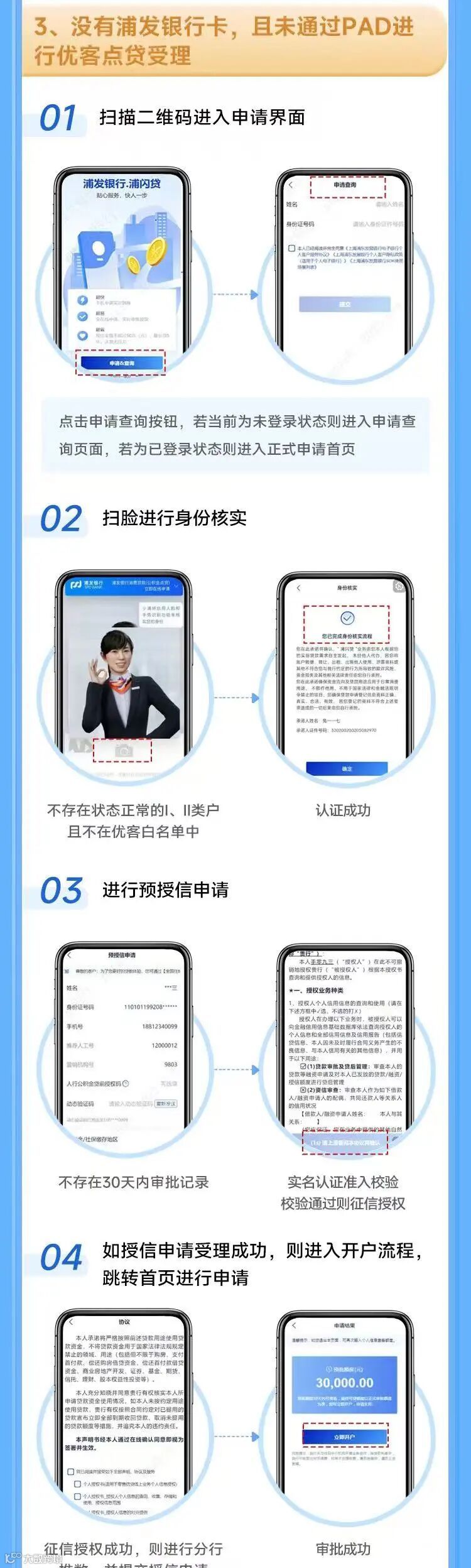 2、浦闪贷超过30万额度时,需要线下面核;