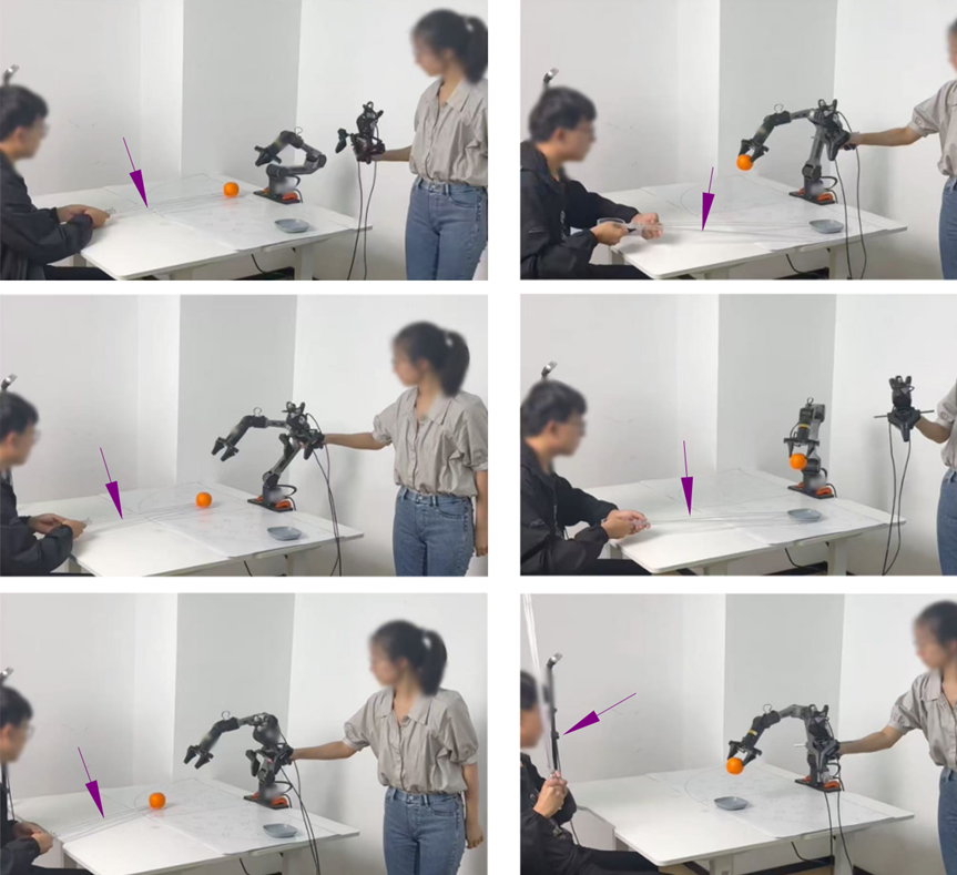 物体旋转:针对带把手的杯子这类不对称物体,控制其围绕垂直轴匀速旋转,让机器人适配物体的不同朝向; -