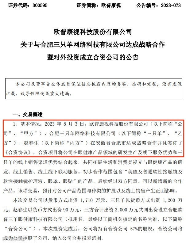 疯狂小杨哥的自有品牌则是“小杨臻选”,今年8月,疯狂小杨哥还与上市企业欧普康视合资开设企业,计划共同孵化美瞳品牌“梦视清”。