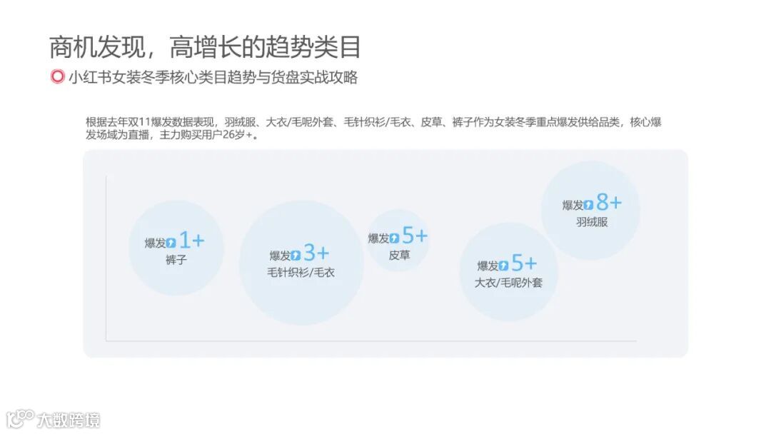 小红书女装行业增长势头强劲,商家经营成果显著,冬季类目成为全年核心爆发点。平台店播交易额年增 3.6 倍,年销千万的商家数增长 6 倍,时尚类目标客单价高且退货率低,主理人品牌、新生代口碑店成为经营主力。冬季核心爆发类目集中在羽绒服、大衣 / 毛呢外套、毛针织衫、皮草、裤子,主力消费人群为 26 岁以上,核心爆发场域是直播。消费需求已从基础保暖升级为 “价值型消费”,更注重设计感、品质感与场景适配性,为商家提供了明确的货盘布局方向。