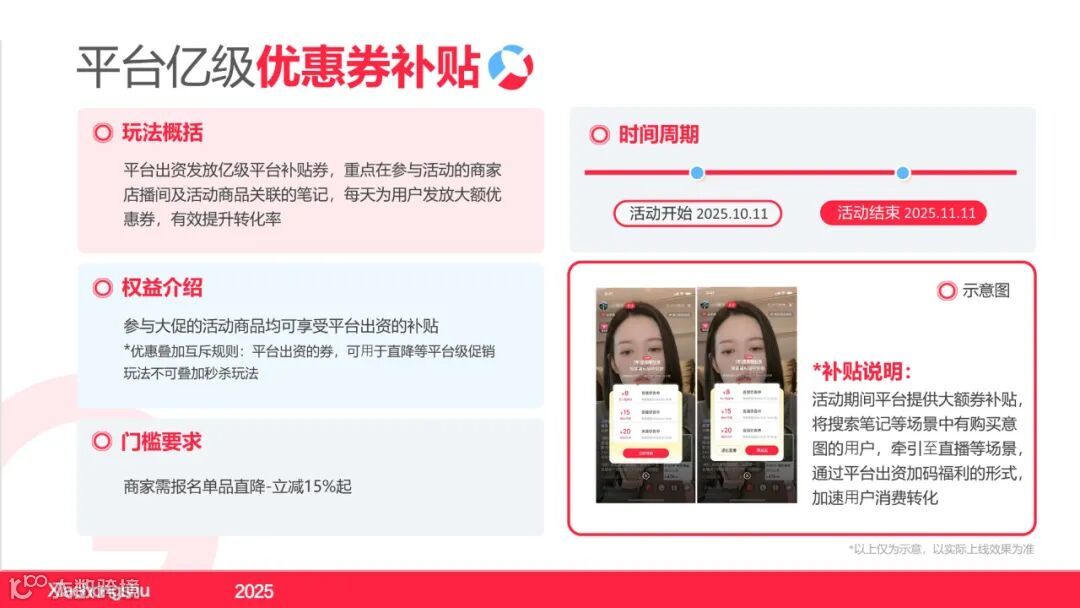 买手合作与笔记运营成为重要增长引擎,平台资源加持加速成交。品牌与买手深度合作可实现双赢,通过选择高坑产买手、共识主推款、充足备货,配合直播间满赠、抽奖等玩法,打造百万级专场。笔记运营需保障数量与质量,每天至少发布 1 篇商品笔记,围绕热点话题创作,参与 “商笔成交挑战” 可获取最高 50 万曝光激励。热门笔记形式包括货品怼拍、对镜穿搭、直播切片、人设分享等,商品笔记需同时兼顾互动价值(点赞、收藏等)与交易价值(点击率、加购率等),低客单价品类适合直接挂链转化,高客单价品类建议 “笔记种草 + 直播间转化” 组合。平台还将发放亿级补贴券,重点支持参与直降活动的商家,牵引搜索、笔记场景的意向用户至直播间,加速消费转化。