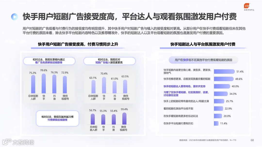 快手用户对短剧广告接受度高,社区氛围成付费转化助推器