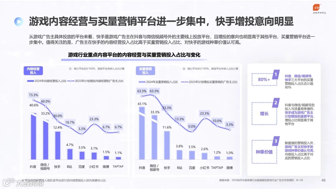 游戏内容经营与买量营销平台进一步集中,快手增投意向明显