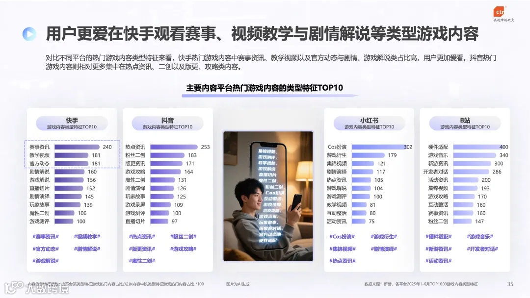 用户更爱在快手观看赛事、视频教学与剧情解说等类型游戏内容