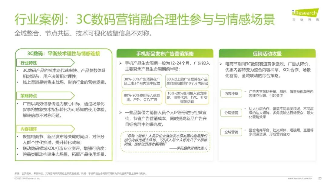 广告主方面,企业广告投入与营业收入呈正相关,汽车、家电等大宗消费行业的广告投入撬动营收增量最为显著,典型企业年广告投入保持较高水平。媒介选择上,广告主综合考量流量性质、内容适配度与转化效率,搜索引擎的高意向流量、社交媒体的互动属性、短视频平台的沉浸体验、电商平台的交易闭环成为核心选择依据。不同发展阶段的企业制定差异化广告策略:新品上市侧重高流量 + 强转化,高端化转型聚焦文化渗透与圈层认同,智能化转型强调技术可视化与场景赋能,品牌出海则依赖本地化广告构建文化认同,3C 数码、汽车、美妆个护等行业均形成适配自身特性的营销范式。