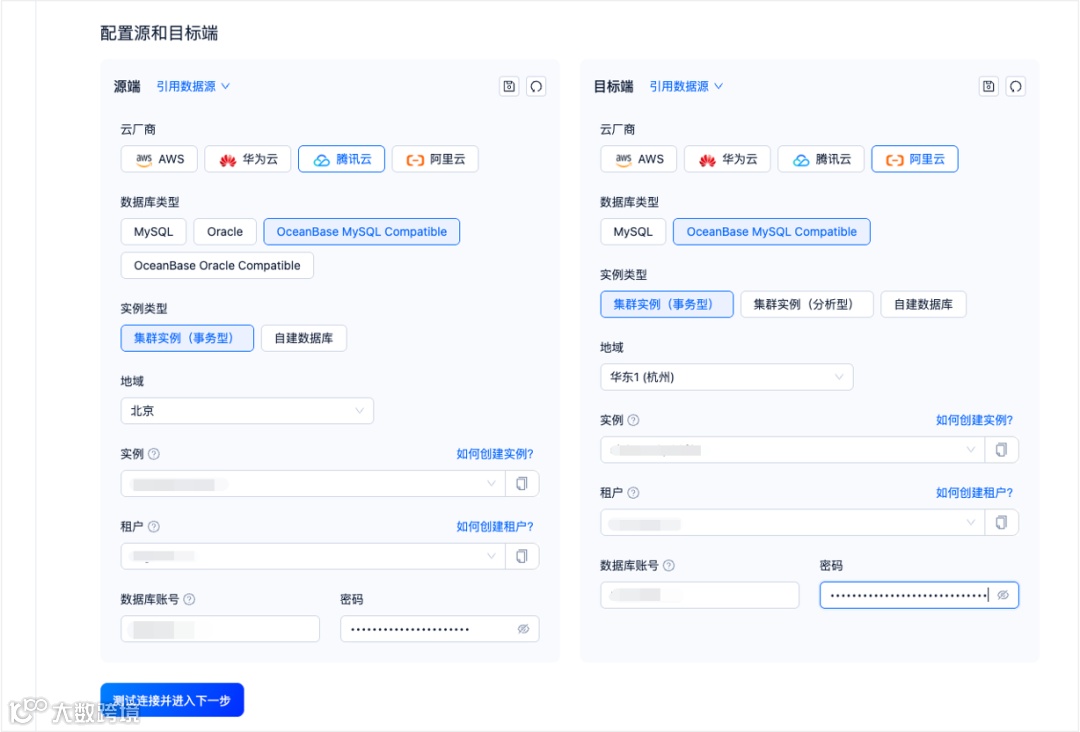 说明:跨云厂商数据同步迁移功能为白名单功能,如需使用,请联系 OB Cloud 技术支持人员。