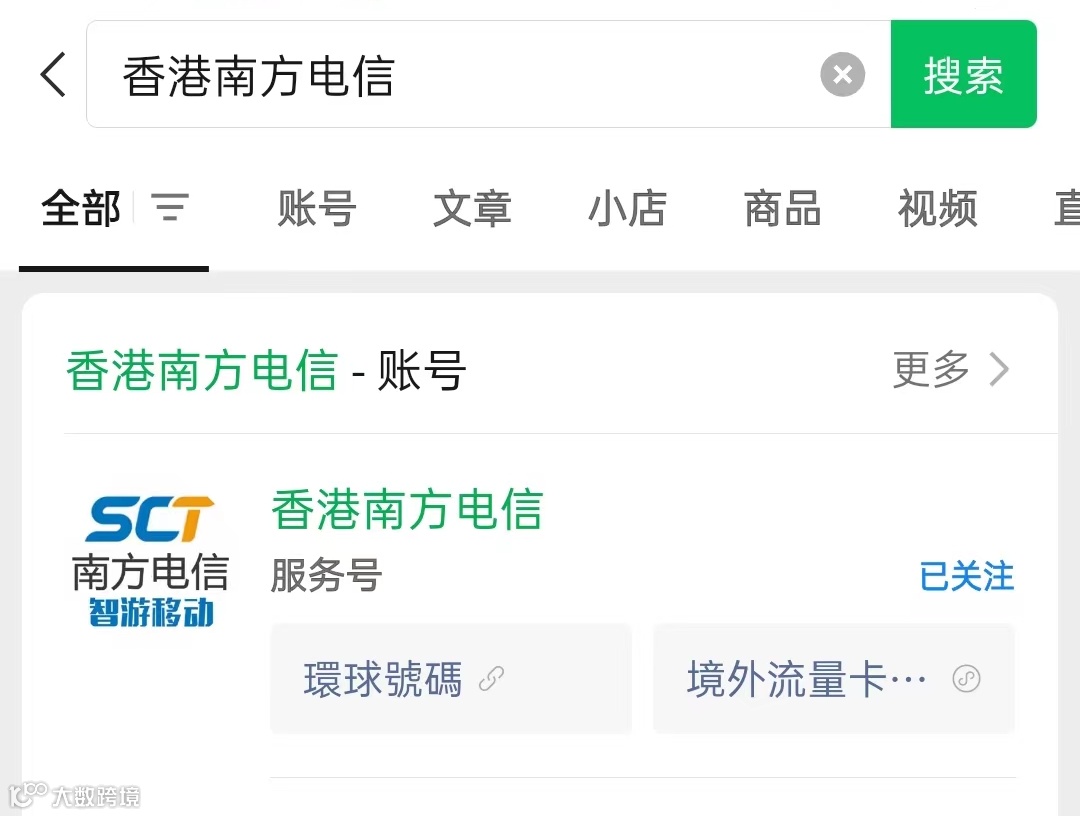 1. 關注微信公眾號【香港南方電信】