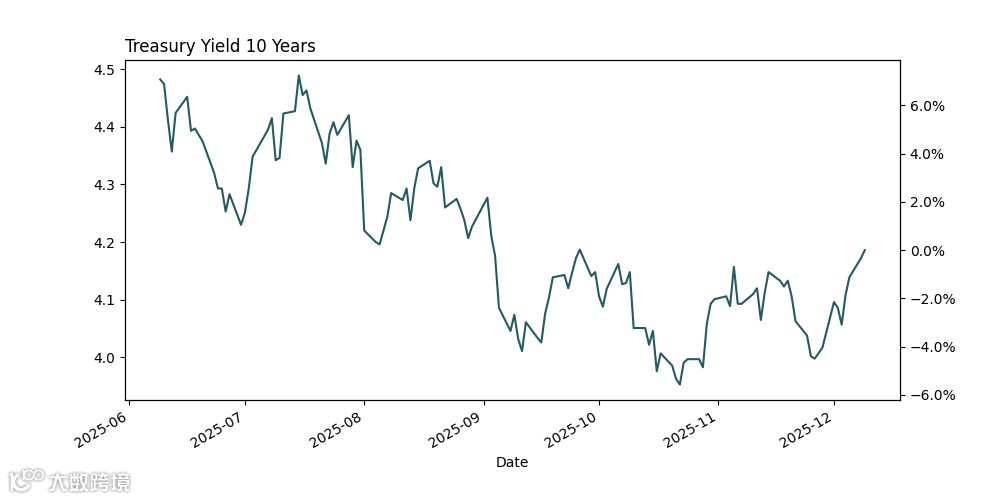8.美债收益率集体上涨,2年期美债收益率涨4.80个基点报3.615%,3年期美债收益率涨4.84个基点报3.652%,5年期美债收益率涨4.73个基点报3.788%,10年期美债收益率涨2.35个基点报4.188%,30年期美债收益率涨0.81个基点报4.809%。美债收益率集体上涨的核心驱动因素包括美联储政策预期调整、通胀压力边际回升及经济韧性超预期。