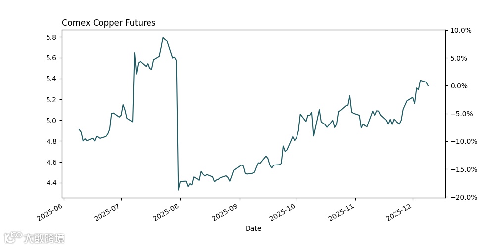6.国际贵金属期货普遍收涨,COMEX黄金期货涨0.45%报4236.6美元/盎司,COMEX白银期货涨4.72%报61.16美元/盎司。国际清算银行警告黄金与股市可能同时存在泡沫风险,对冲基金风险偏好上升。美联储政策走向和地缘政治局势成为影响贵金属市场的关键因素。