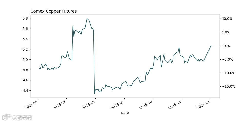 7.国际贵金属期货收盘涨跌不一,COMEX黄金期货跌0.84%报4238.70美元/盎司,COMEX白银期货涨0.01%报59.15美元/盎司。特朗普政府货币政策信号与美联储降息预期共振,地缘政治风险持续发酵支撑贵金属价格。美国经济增速预期下调与通胀压力并存,市场不确定性增强黄金避险吸引力。