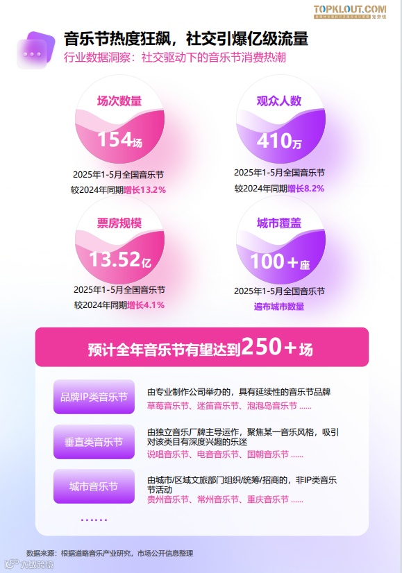从154场阶段性数据到全年250+预期,音乐节早已超越“听音乐”本身,成为情感释放地、社交联结场、城市名片与品牌营销阵地。