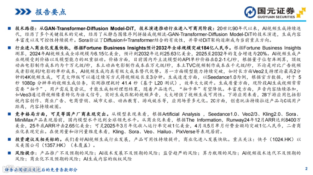 下载报告:AI应用行业系列报告:AI视频生成,商业化加速,国产厂商表现亮眼