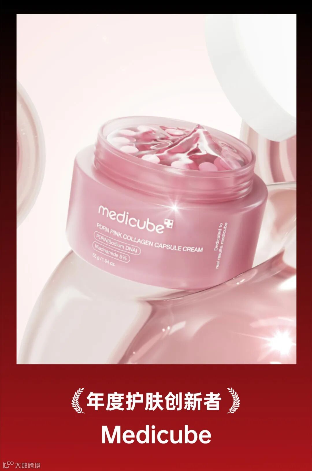 Medicube以PDRN成分为核心的胶囊面霜、安瓶精华及胶原蛋白面膜在TikTok掀起热潮;早在2023年,其搭载微电流与EMS技术的Age-R Booster Pro美容仪已在社交平台积累广泛声量。