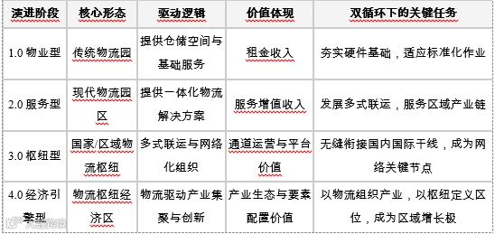 顺应双循环要求,物流枢纽须完成从单一功能体向复合生态体的战略升维,可划分为四个跃迁阶段: