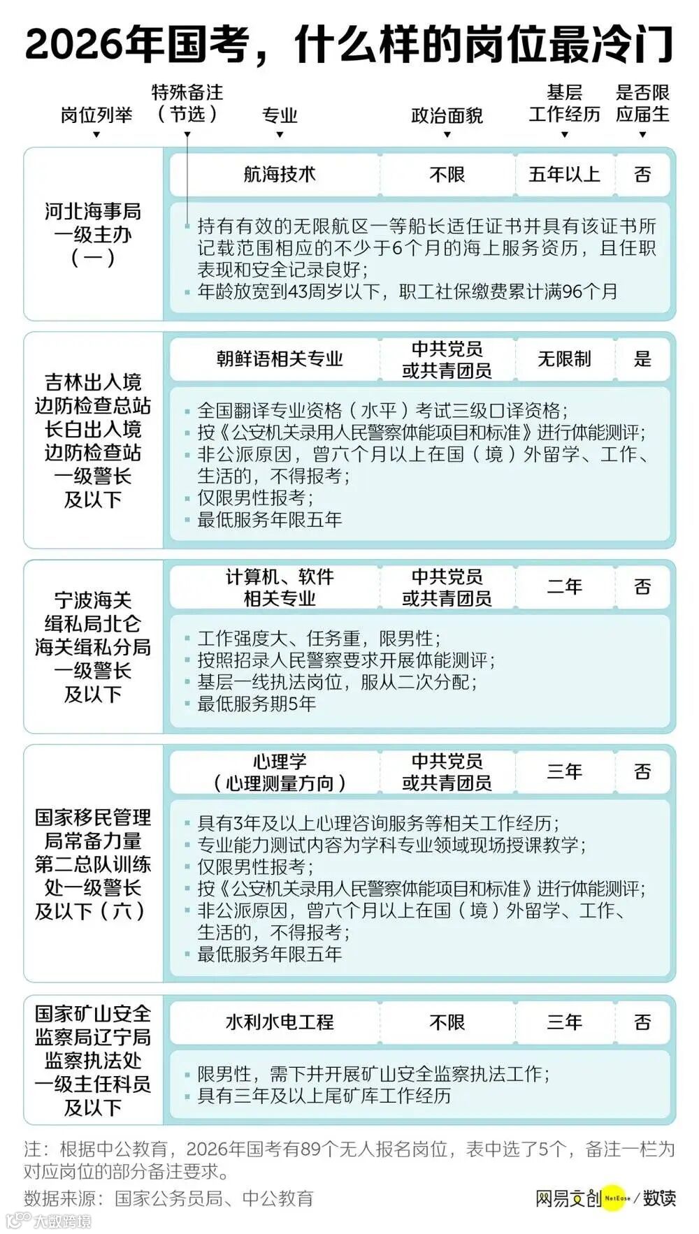 根据中公教育数据,2026年国考有89个无人报考的岗位,主要分布在边检、气象局、水利局等部门。这些岗位通常需要考生具备一技之长,或具备一定的基层工作经验,或能接受艰苦条件。