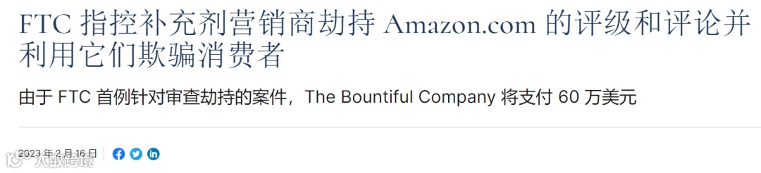 变体违规,并不是亚马逊第一次出手整治,现今也有点往事重现的情形。去年4月,亚马逊也严查了一波变体违规。甚至,亚马逊大卖The Bountiful Company去年还因此被起诉,被处以60万美元的罚款。