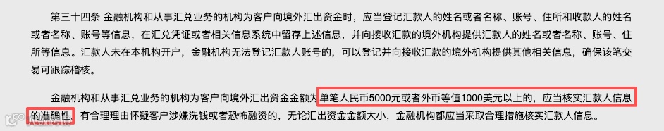 触发门槛:单笔境外汇款≥人民币 5000 元,或外币等值≥1000 美元;
