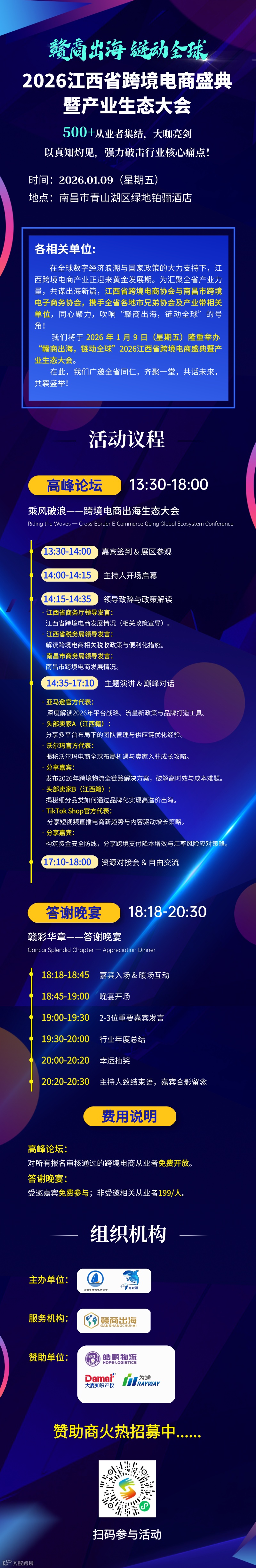 从景德镇瓷器的千年窑火,到南康家具的现代设计,江西的产业带正通过跨境电商,将深厚的制造底蕴转化为国际竞争新优势。这不仅是产业的升级,更是开放思维与发展模式的深刻变革。在“链式集群”的协同推进下,江西跨境电商生态持续完善,江西省跨境电商发展已进入快速成长阶段,成为推动全省对外开放和外贸转型升级的重要力量。