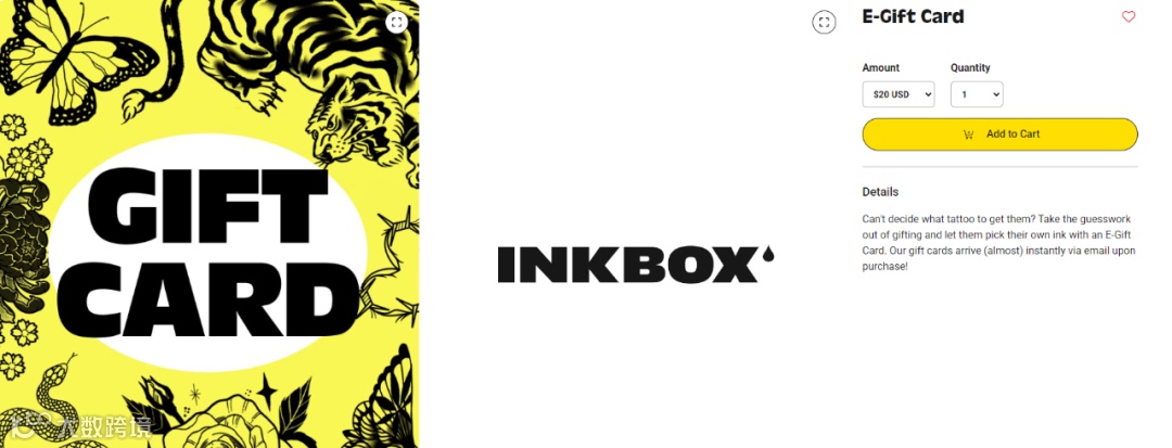 Inkbox推出可即时发送的电子礼品卡,帮助用户轻松完成“送礼决策”,这是能够减少犹豫期带来的购物流失的。此外,礼品卡还能带来现金流提前锁定、复购率提升与用户拉新三重效益。根据GCVA数据显示,超过68%的人消费金额超过了礼品卡面值。