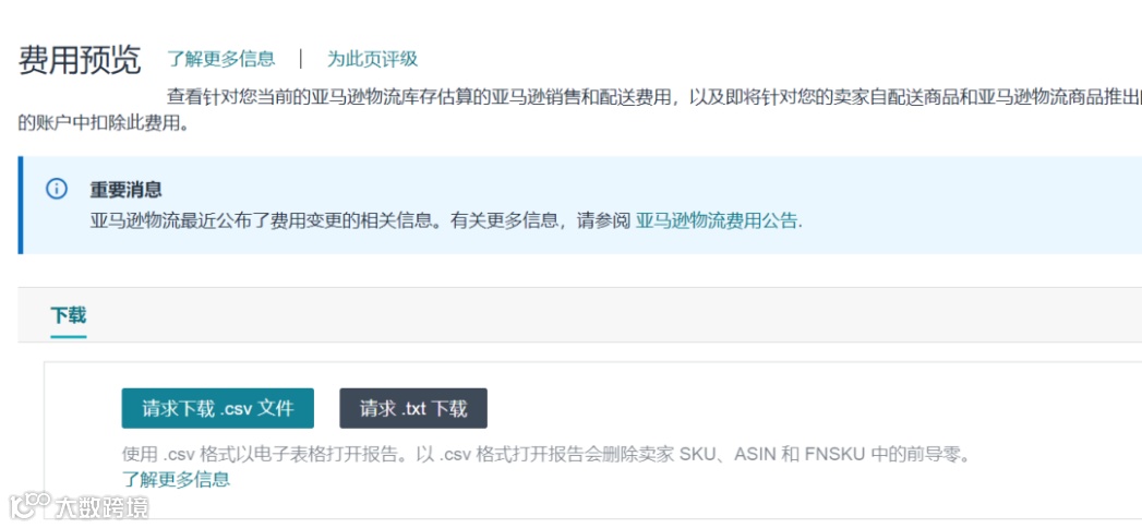 路径:卖家平台 > 报告 > 配送 > 费用报告 > 费用预览