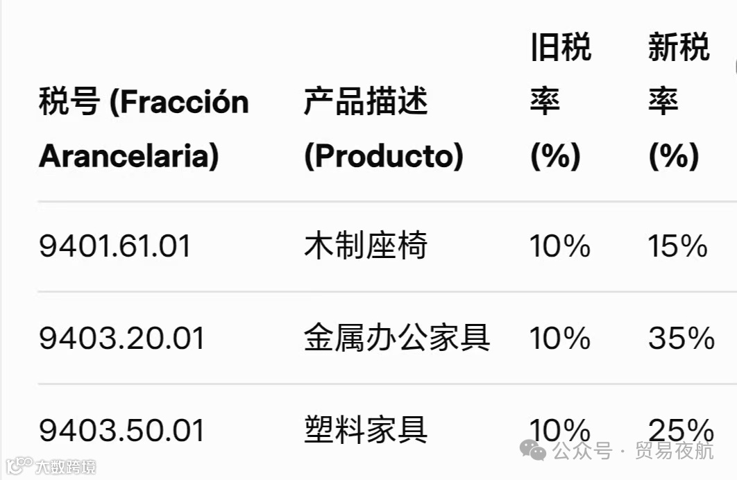 7. 家具:28个税号,税率15%–35%
