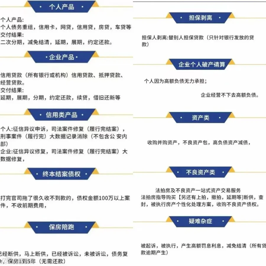 个人/企业融资与债务服务核心:以法律为依据、政策为导向、交付为事实!