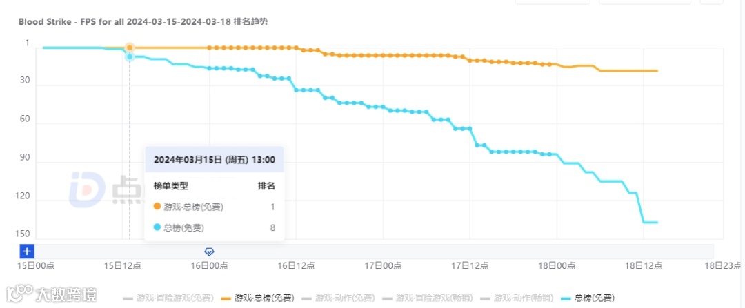 上周五(3月15日)《Blood Strike》正式登陆美国市场iOS端,上线当日便登顶美国iOS游戏免费榜,预下载(3月14日开启)及首日下载累计达21.5万,目前依然位于游戏免费榜15名的位置。