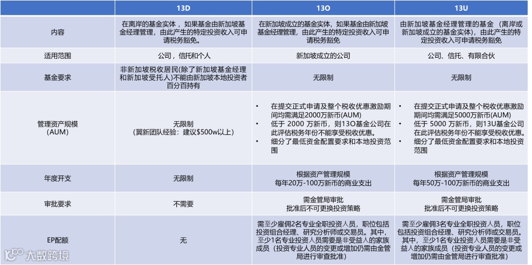 申请门槛分别为2000万新币(13O)、5000万新币(13U),或建议500万新币以上(13D);投资策略须获新加坡金融管理局(MAS)批准,不可擅自变更[k]。