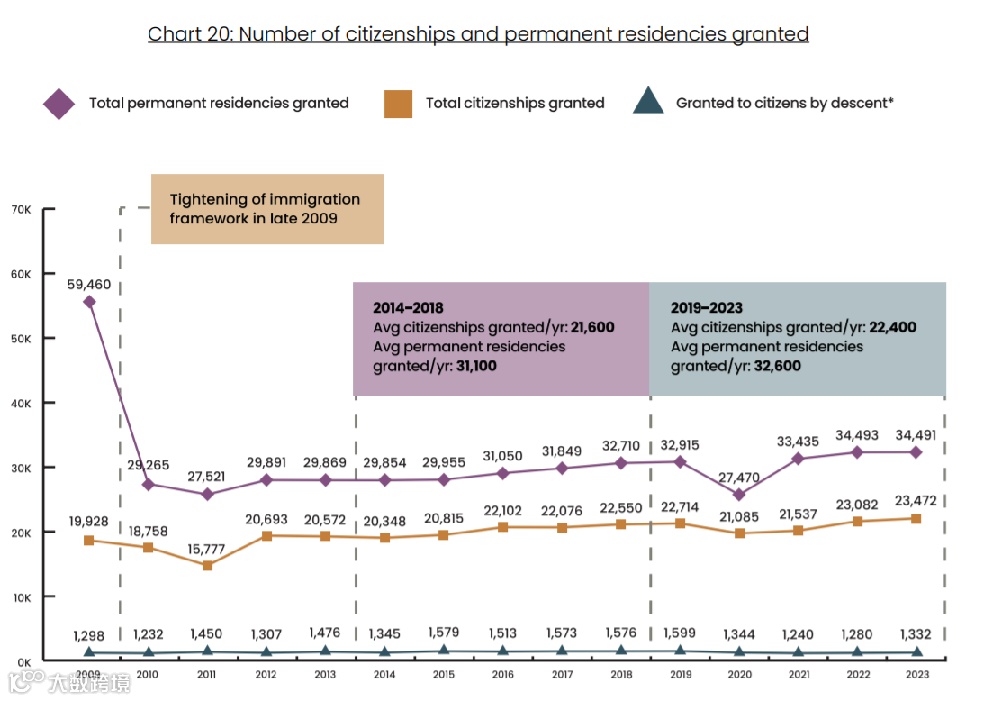 根据《2024年新加坡人口简报》,2019至2023年间,年均约22,400人成为新加坡公民,32,600人获得PR身份,较2014–2018年有所上升[k]。