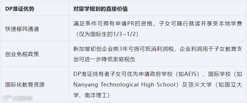 家长作为主申请人注册新加坡公司并获批EP,可为子女申请家属准证(DP)。持DP的未成年子女可直接入读本地学校(政府或国际学校),无需另申学生准证(STP)[k]。