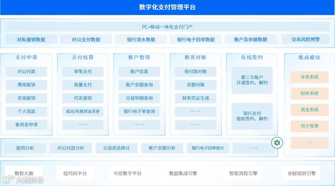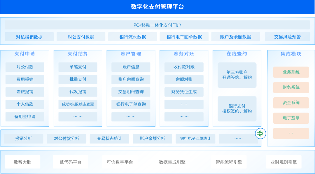 1)个人报销支付:在泛微系统完成报销审批后,可直接通过银企直联接口向银行发送支付指令,无需再登录网银重复审批,实现报销-付款流程的自动化处理。