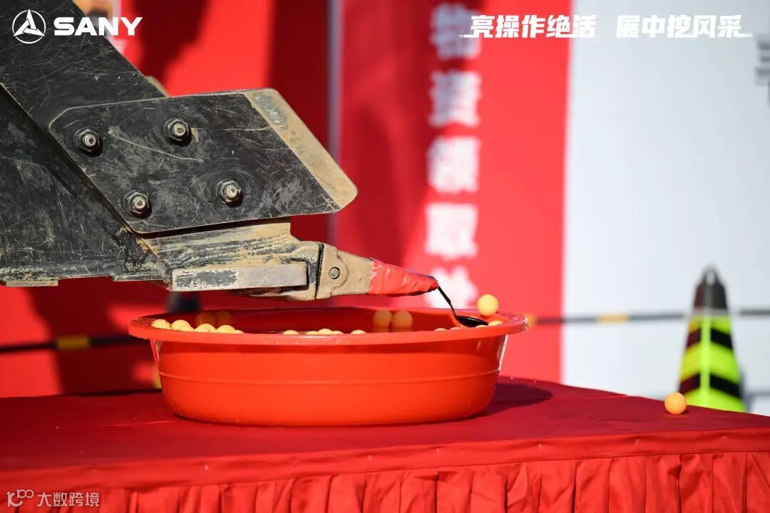“掘胜金球”堪称全场最考验“手感”的项目!操作手需要驾驶中挖,用铲斗精准抓取直径仅5厘米的金球,并平稳放入透明玻璃容器中。10分钟内,金球掉落不计分、碰倒容器扣分,精准度与流畅度缺一不可!
