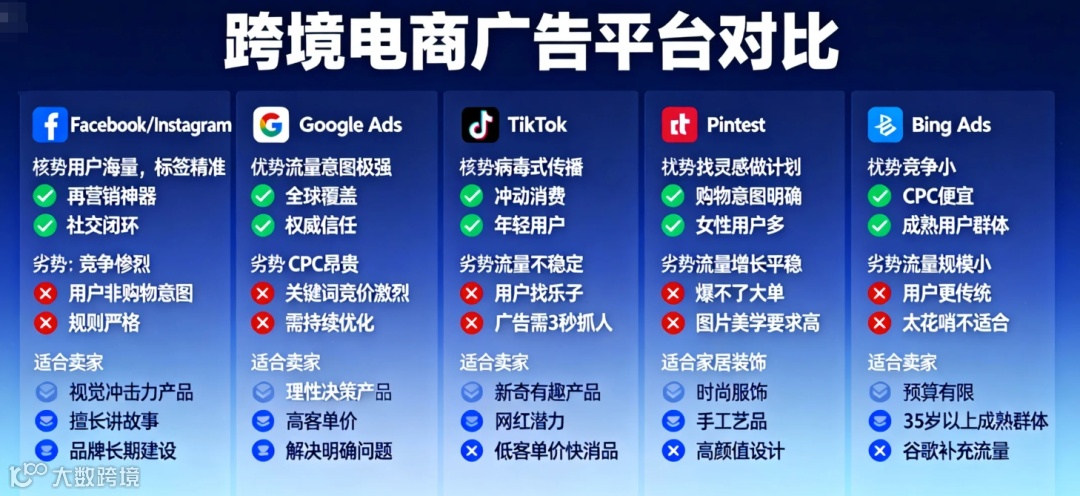 想在海外市场盈利,广告投放策略至关重要。各平台规则差异显著,策略失当易导致预算低效消耗。本文深度解析主流广告平台核心逻辑与实操要点,助力独立站卖家精准决策。