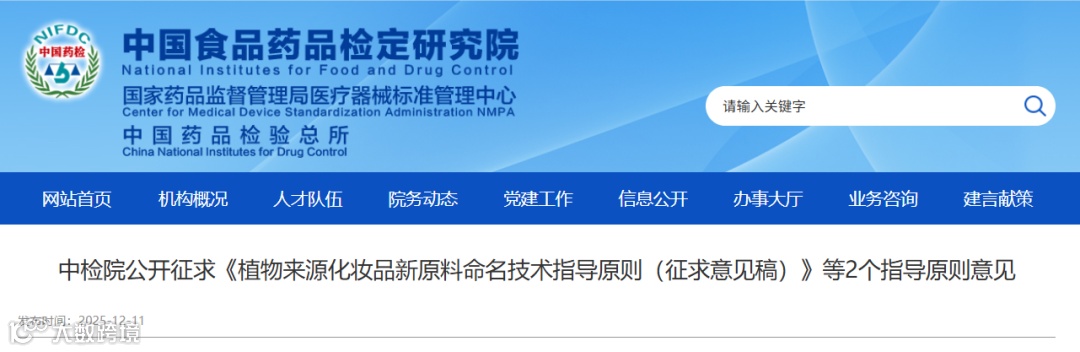 为落实《国家药监局关于深化化妆品监管改革促进产业高质量发展的意见》和《支持化妆品原料创新若干规定》,进一步规范和指导化妆品新原料命名工作,按照《化妆品监督管理条例》《化妆品注册备案管理办法》等相关法规文件要求,中检院起草了《植物来源化妆品新原料命名技术指导原则(征求意见稿)》《发酵来源化妆品新原料命名技术指导原则(征求意见稿)》及起草说明(附件1—4),现向社会公开征求意见。