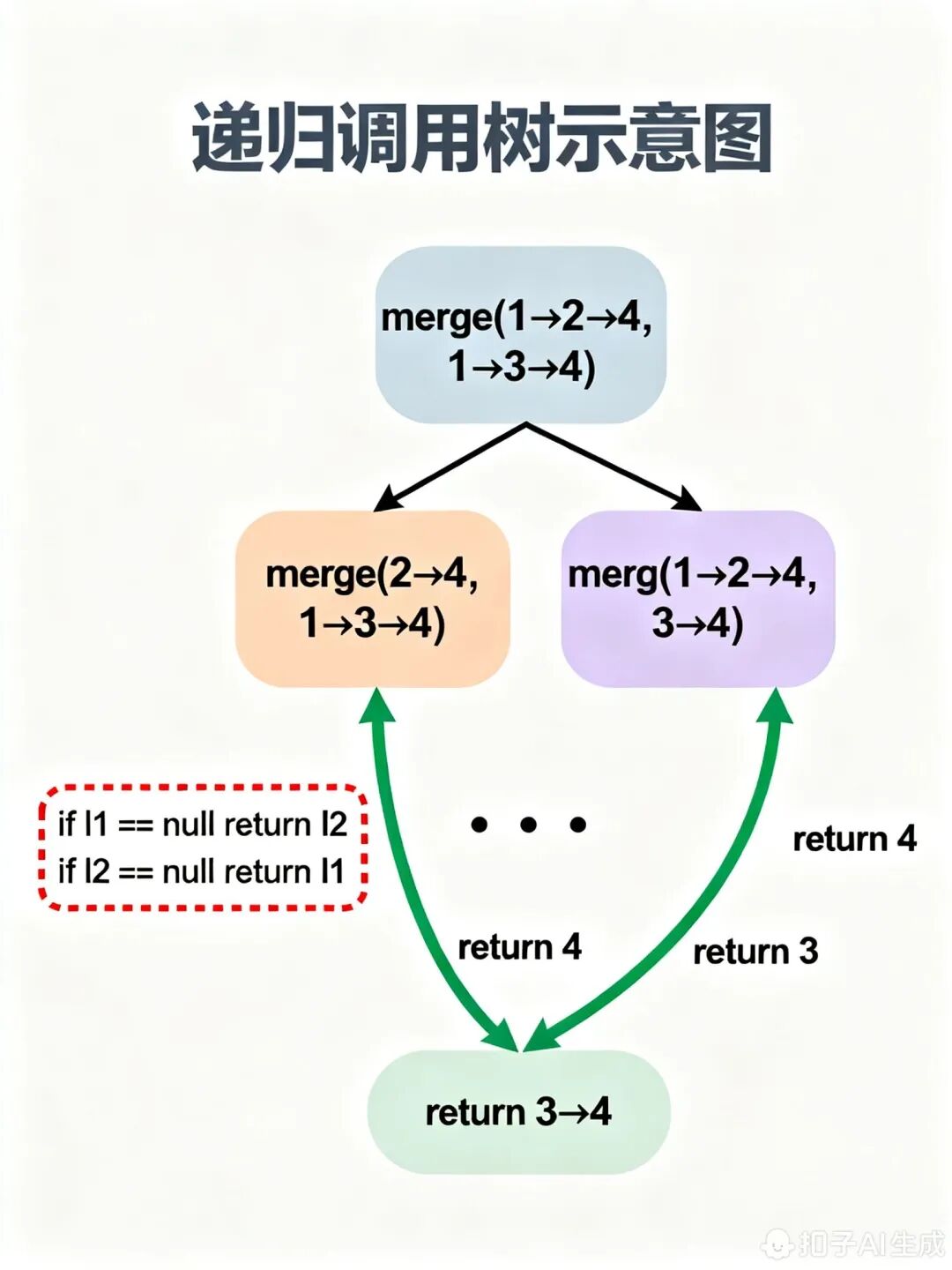 def mergeKLists(lists):if not lists:return Nonereturn merge(lists, 0, len(lists) - 1)def merge(lists, left, right):if left == right:return lists[left]mid = (left + right) // 2l1 = merge(lists, left, mid)l2 = merge(lists, mid + 1, right)return mergeTwoLists(l1, l2) # mergeTwoLists是前面实现的合并两个链表的函数