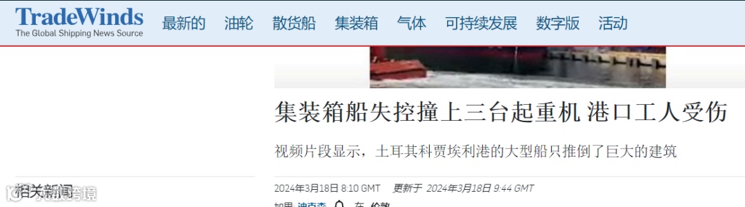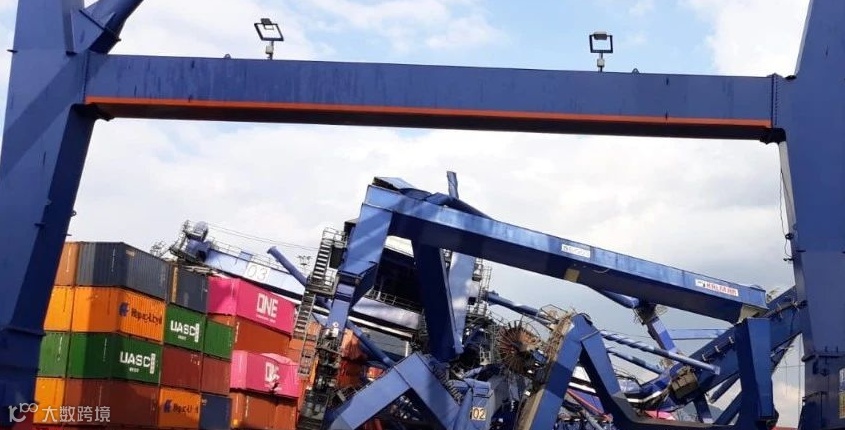 有报道称,阳明海运旗下一艘名为“YM Witness”的大型集装箱货船,在土耳其一港口靠泊时突发意外,触碰了码头岸桥(安装在码头岸线上,用于装卸集装箱船舶上的集装箱的大型起重机械),造成至少三座集装箱岸桥倒塌、损坏。