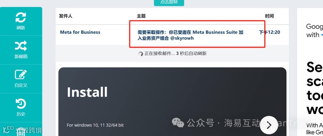 发送邀请后,跳转至临时邮箱页面[k]